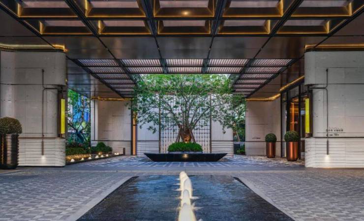 社区入口处,百米客栈式落客门庭容光焕发,贝金米黄石材的质感尽显高尚;大树聚场,全冠移植超60年铁冬青,归家的第一眼便全是贵气。五重礼序园林(迎、礼、聚、活、登)层层递进,蓝钻大理石中庭水景波光粼粼,躺平水院爱马仕灰奢石拼花交相照映,每一处细节都正在诉说着海派住区的杰出品德。